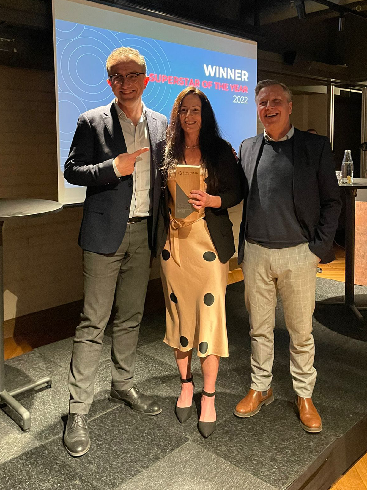 Clare Busst celebrated her 24th anniversary with Glenigan yesterday, and she did it in style; winning Superstar of the Year at the Byggfakta Awards in Sweden!