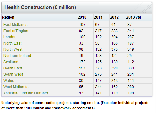 The underlying value of health starts has been on a downward trajectory this year, and starts in the three months to September were down 36% on a year ago. This followed a 17% drop in the value of projects securing detailed planning approval during 2012.
