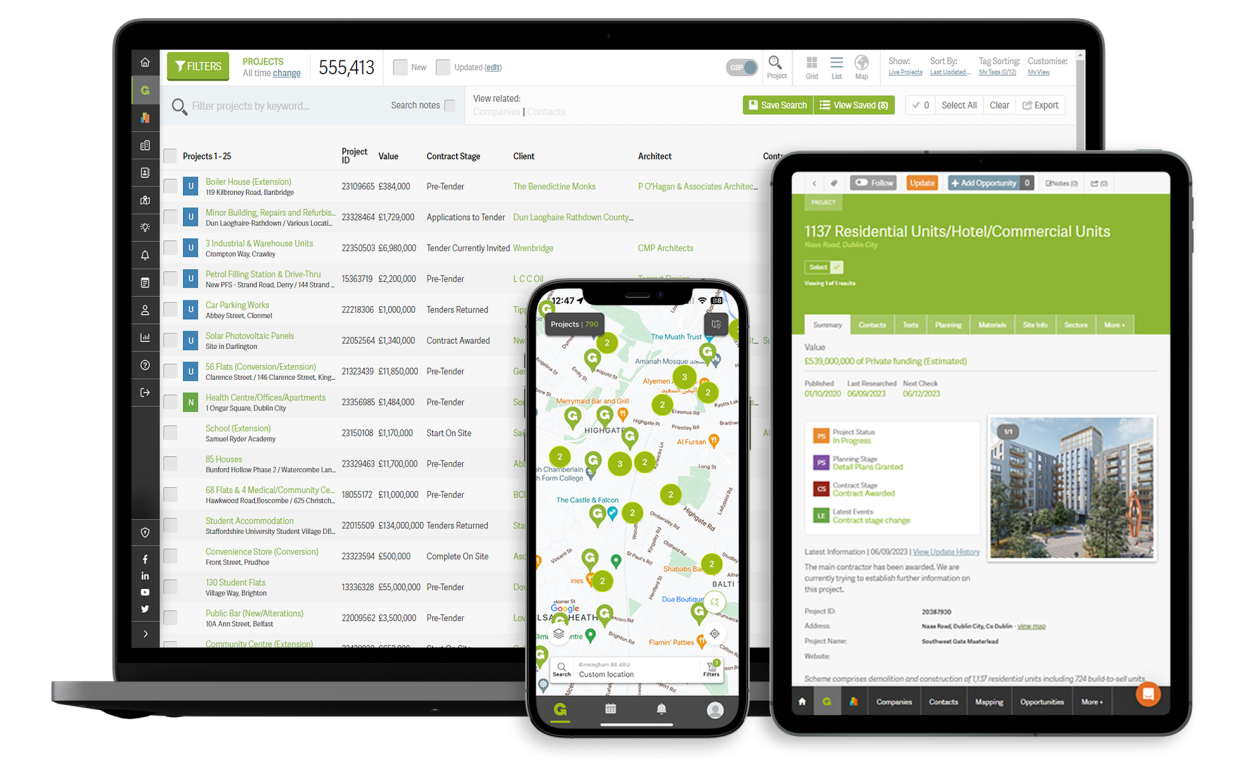 See construction activity throughout the UK which can lead to new business.